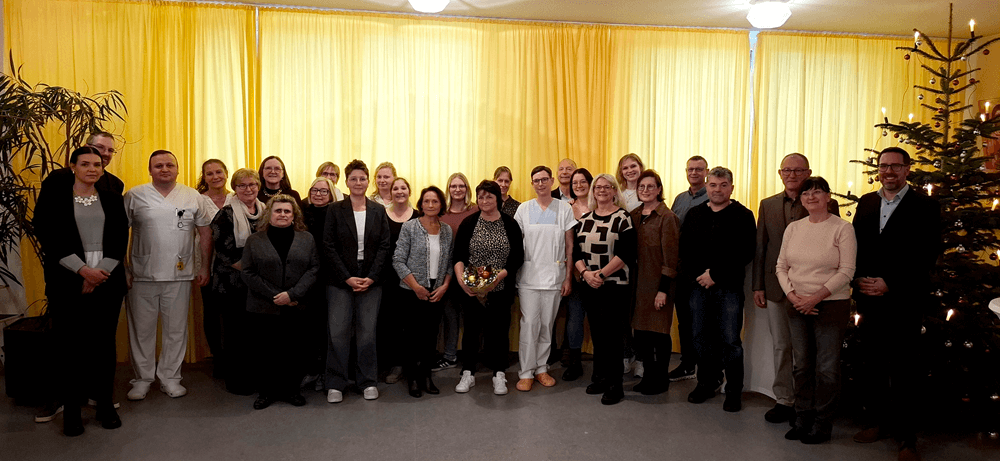 Zu den Gästen zählten unter anderem Landrat Dr. Oliver Bär, Klinikvorstand Peter Wack, die Pflegedienstleitungen aus Münchberg und Naila, Elke Förschler und Peter Schönefeld, sowie der Personalratsvorsitzende Marcus Bartel. Sie alle sprachen den Jubilaren ihre herzlichen Glückwünsche aus und würdigten deren langjährige, wertvolle Arbeit. Beim anschließenden gemeinsamen Essen wurde in entspannter Atmosphäre auf die vergangenen Jahre angestoßen.